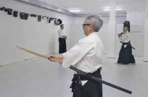 Desde su origen en las artes marciales ancestrales japonesas de los guerreros samurai, el Aikido integra la práctica a manos vacías y el estudio de las armas (cuchillo, lanza y espada), como parte de un mismo conocimiento, destinado a transmitir los principios comunes entre ellas de movimiento, distancia y tiempo. La técnica a manos vacías, las armas y el iaido se complementan y se explican mutuamente, enriqueciendo la comprensión del origen marcial de cada técnica, la distancia (maai), el ritmo y el momento adecuado de la acción.